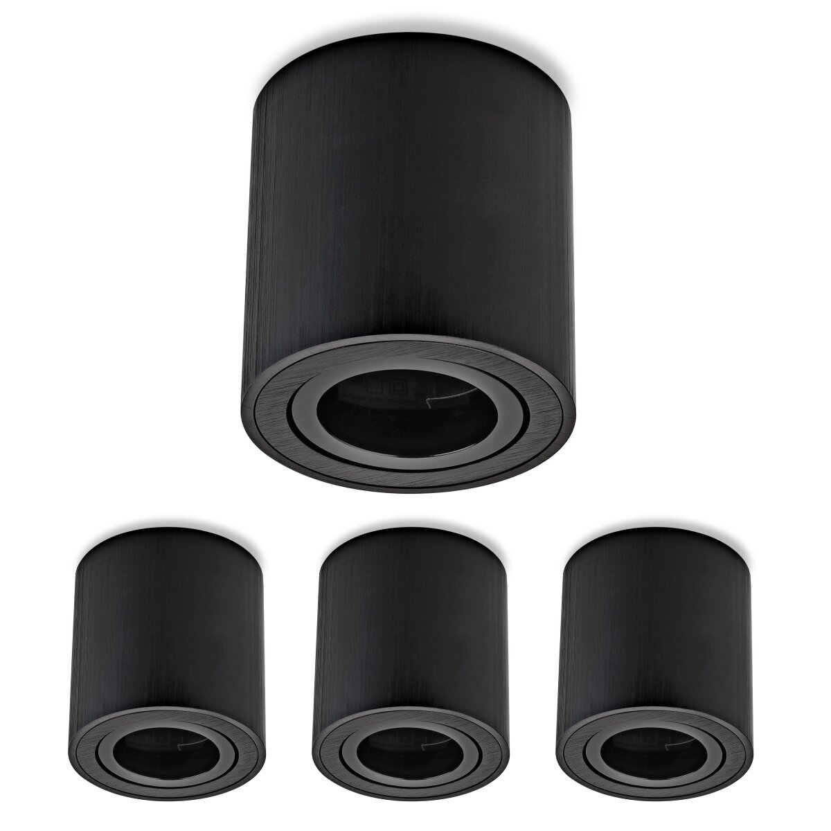 4er Set LED Aufbauspot GU10 Schwenkbar Schwarz Gebürstet | Aufbaustrahler 230V Aluminium Rund