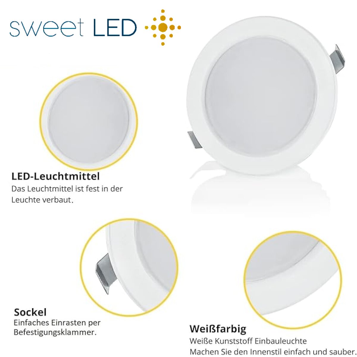 4er Sparpack - LED Möbel Einbaustrahler 12V - LED Einbauspots Badezimmer IP44 - Möbeleinbauleuchten Led Flach rund weiß kaltweiß ca. 20 mm Einbautiefe