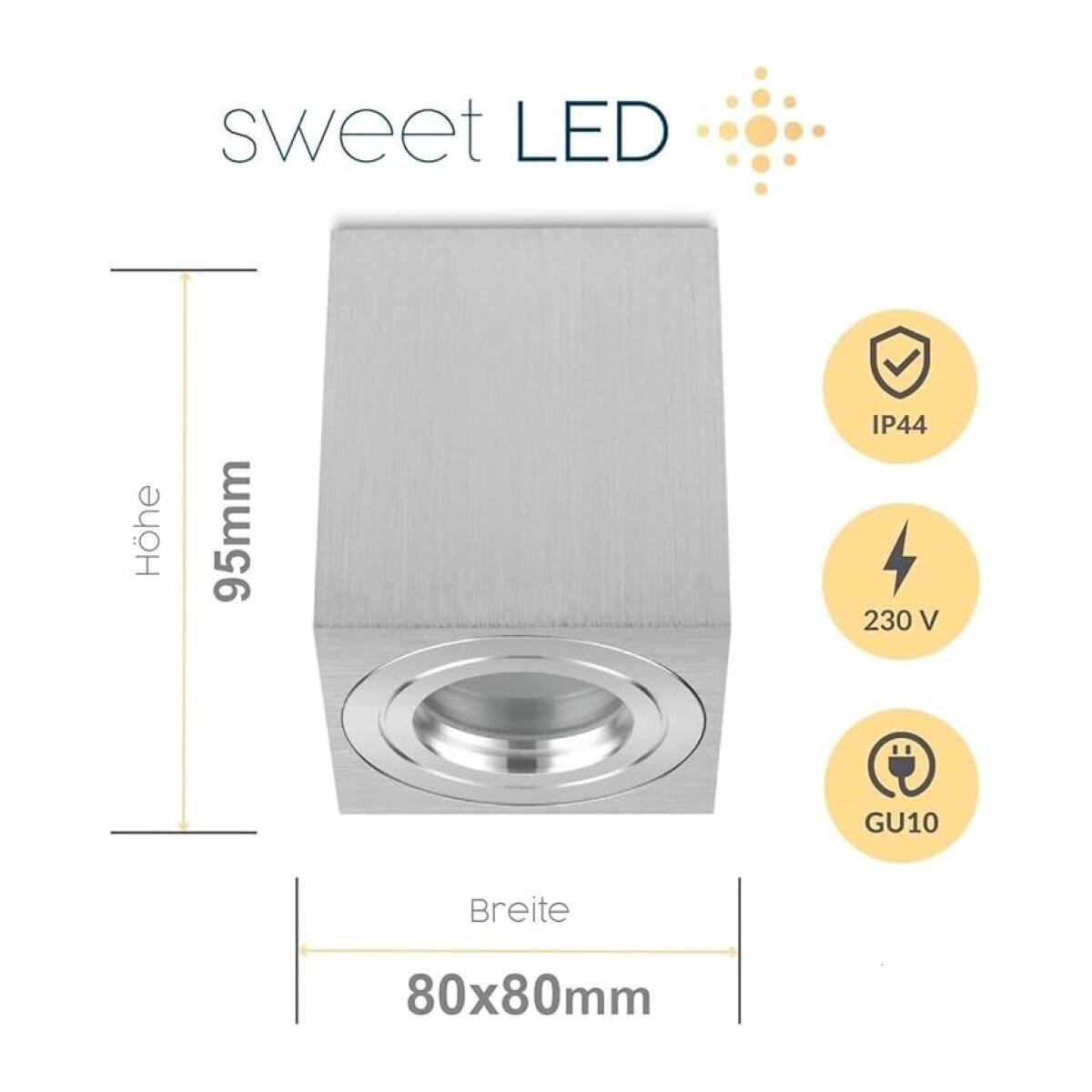 LED Aufbauspots GU10 IP44 4er Set Alu | Spots eckig Bad Decke