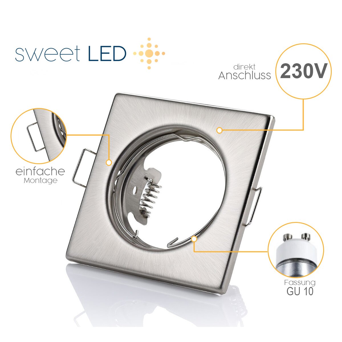 Einbaustrahler 230V Flach - LED Spots Decke Eckig Chrom Gebürstet GU10 - Deckenlampe Schlafzimmer 30 mm Einbautiefe