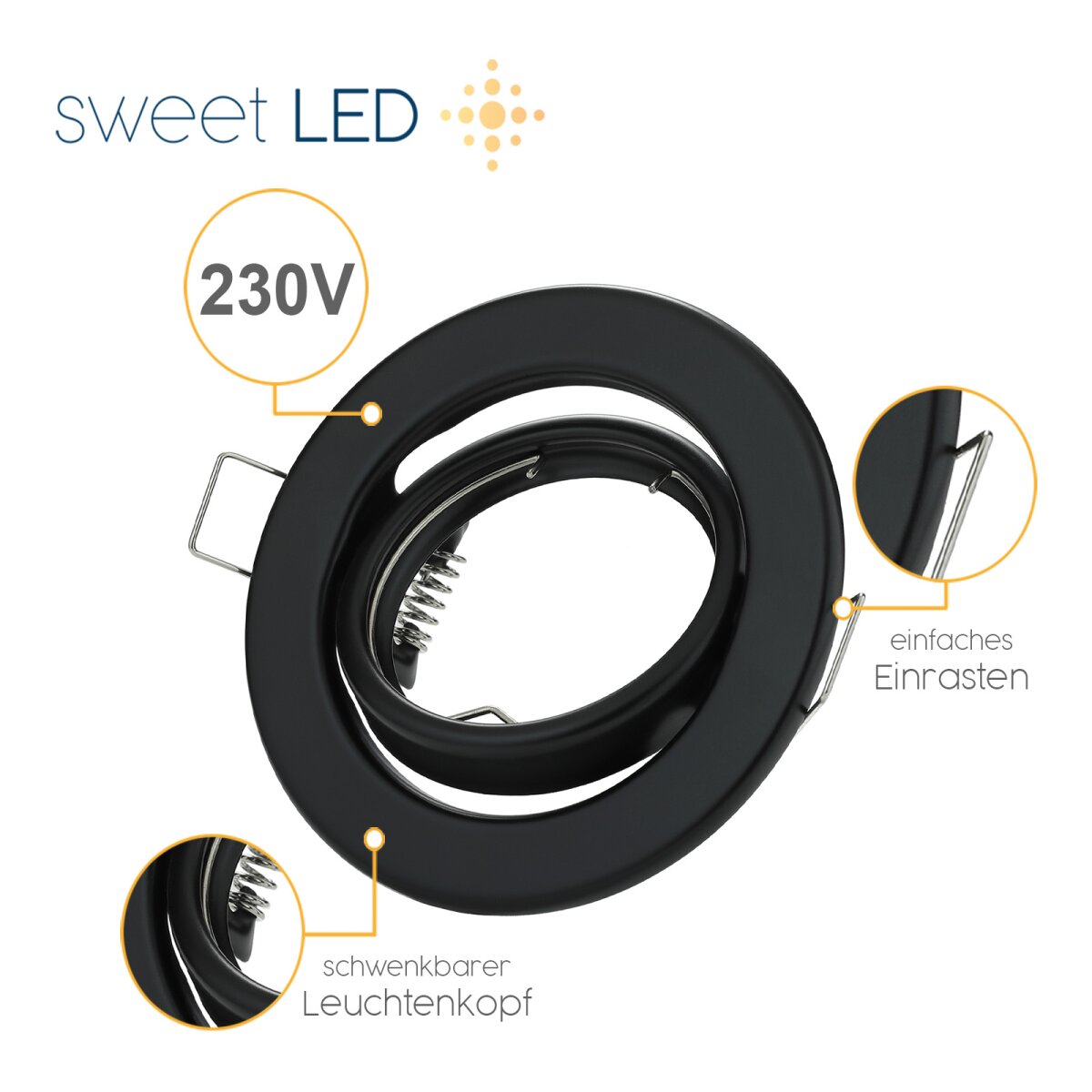 Einbaustrahler GU10 Fassung schwenkbar rund Schwarz matt LED