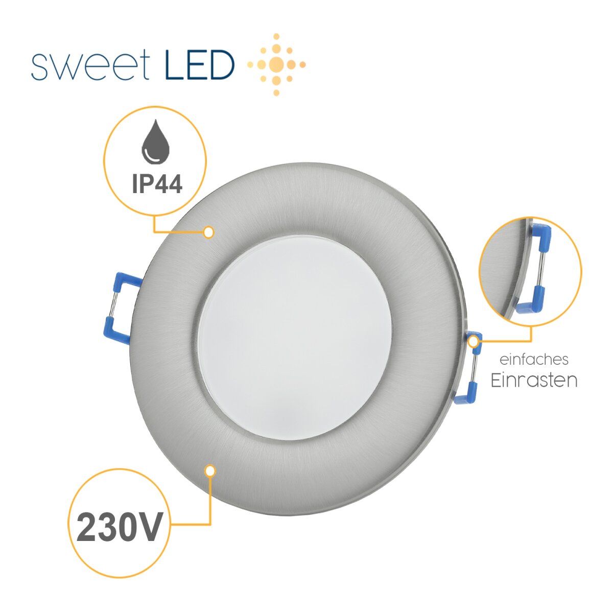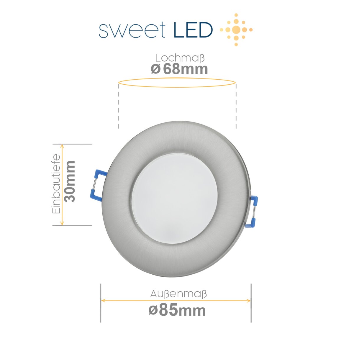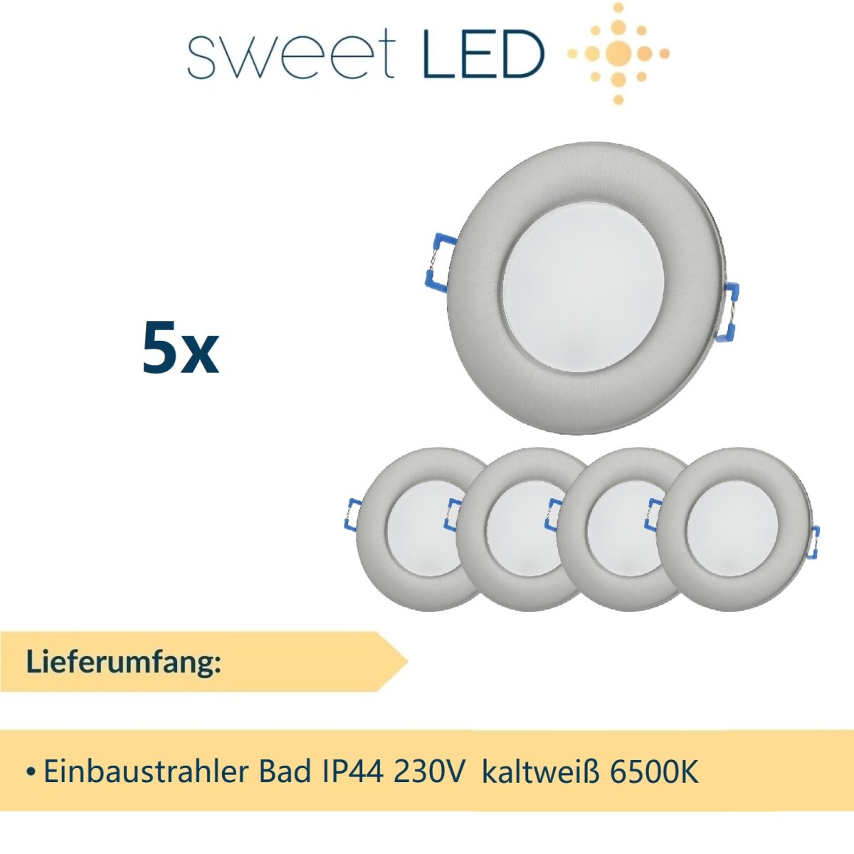 IP44 Einbaustrahler Bad 6,5W | Kaltweiß Flach Chrom 5er Set