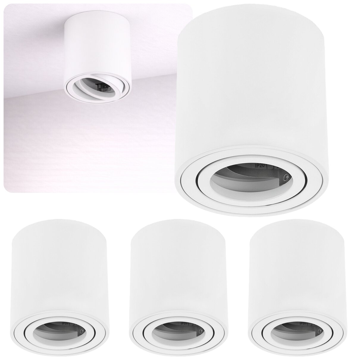 LED Aufbauspot GU10 4er Set weiß matt | rund schwenkbar Decke