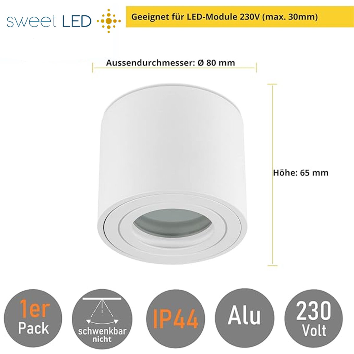 LED Aufbaustrahler IP44 Weiß rund | Bad 230V Ø80mm