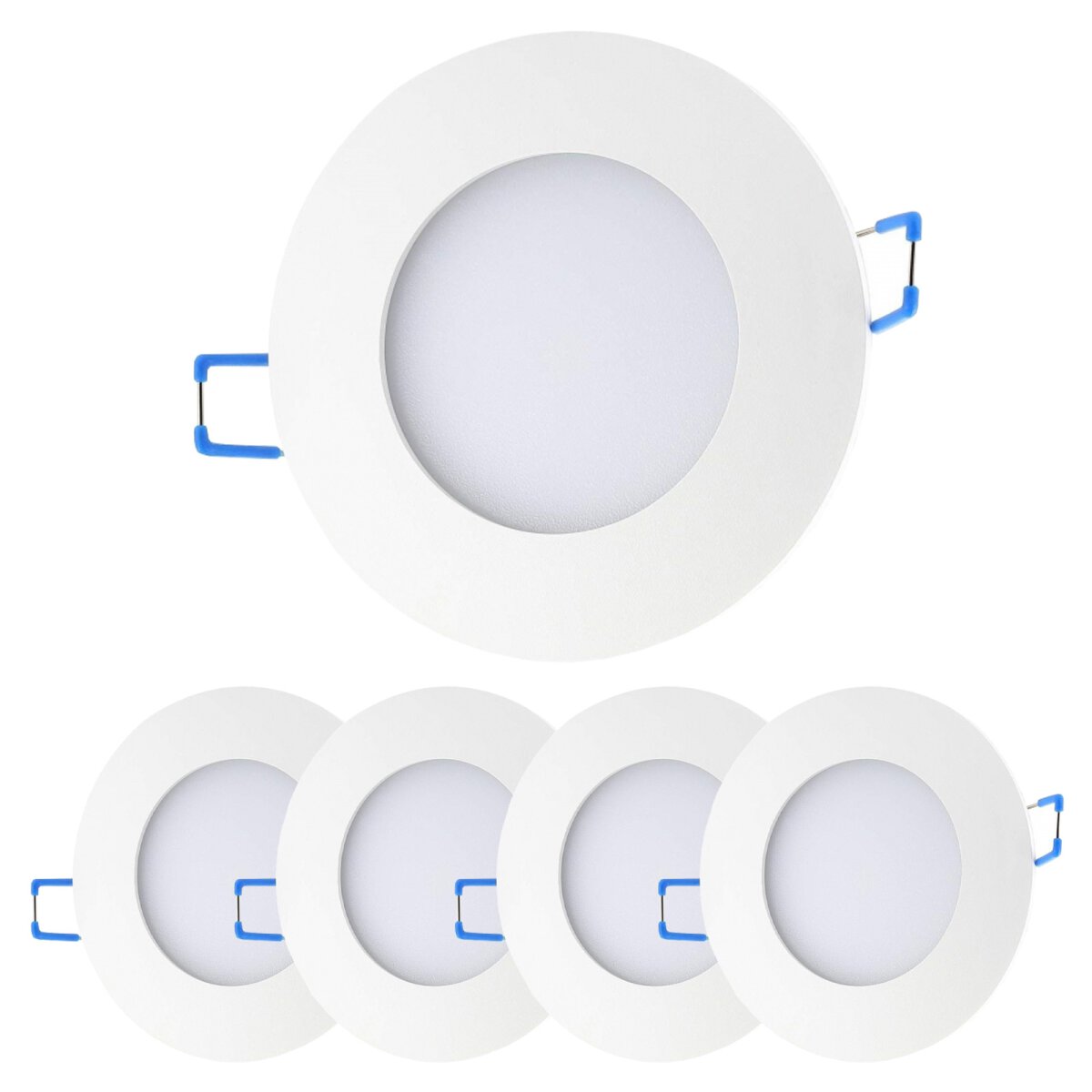 5er Sparpack Einbaustrahler Bad 230V LED - Rund Gebürstet Chromfarbig Flach - Einbauspots LED für Bad IP44 6.5 Watt Kaltweiß
